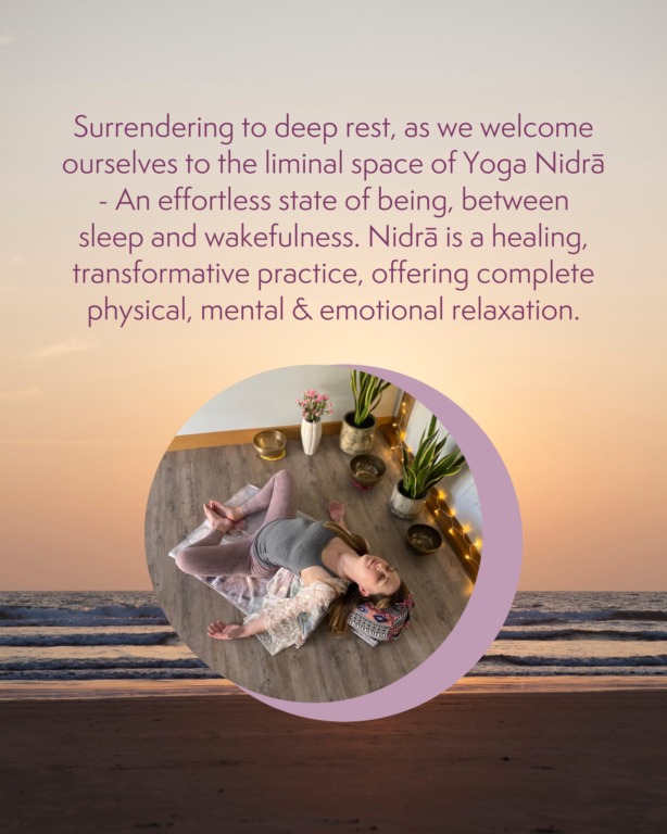 Surrendering to deep rest, as we welcome ourselves to the liminal space of Yoga Nidrā – An effortless state of being, between sleep and wakefulness. Nidrā is a healing, transformative practice, offering complete physical, mental & emotional relaxation.